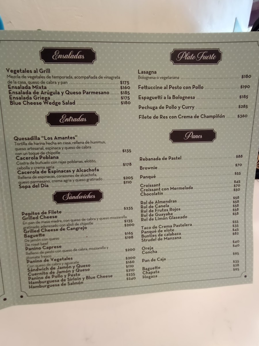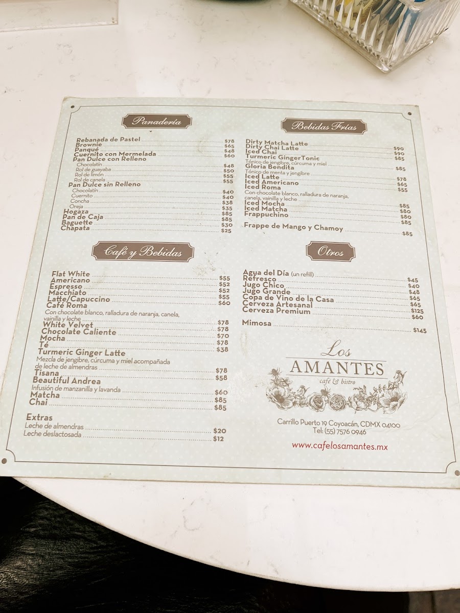 Los Amantes Cafe & Bistro Menu